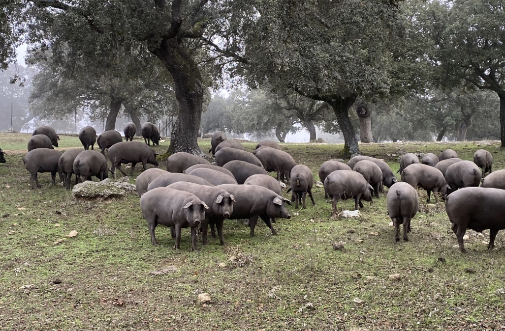 Nuestros cerdos 100% ibéricos viven en completa libertad en nuestras fincas de dehesa, su hábitat natural, donde cada cerdo disfruta de unas 2 hectáreas para él solo durante la montanera.